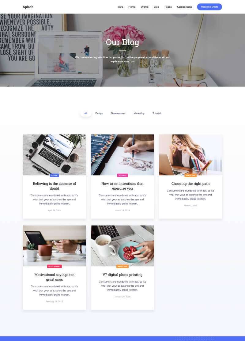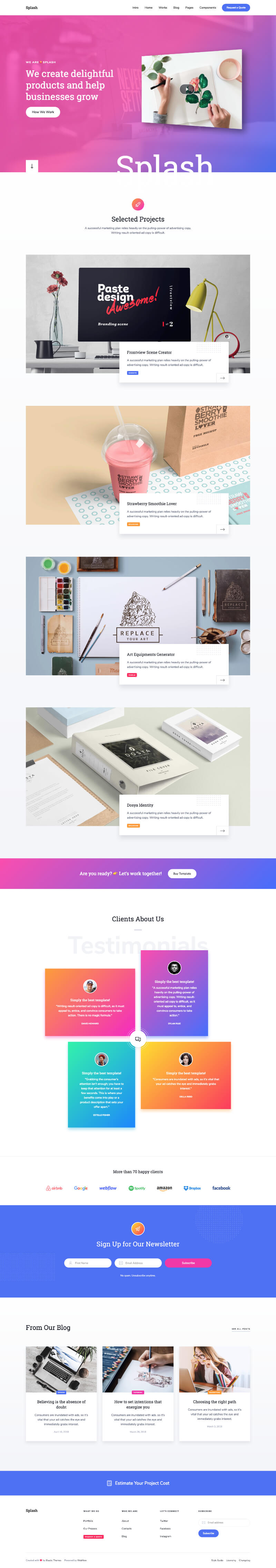 Splash template comes with many variations of components, that you can mix and match to create your unique website.