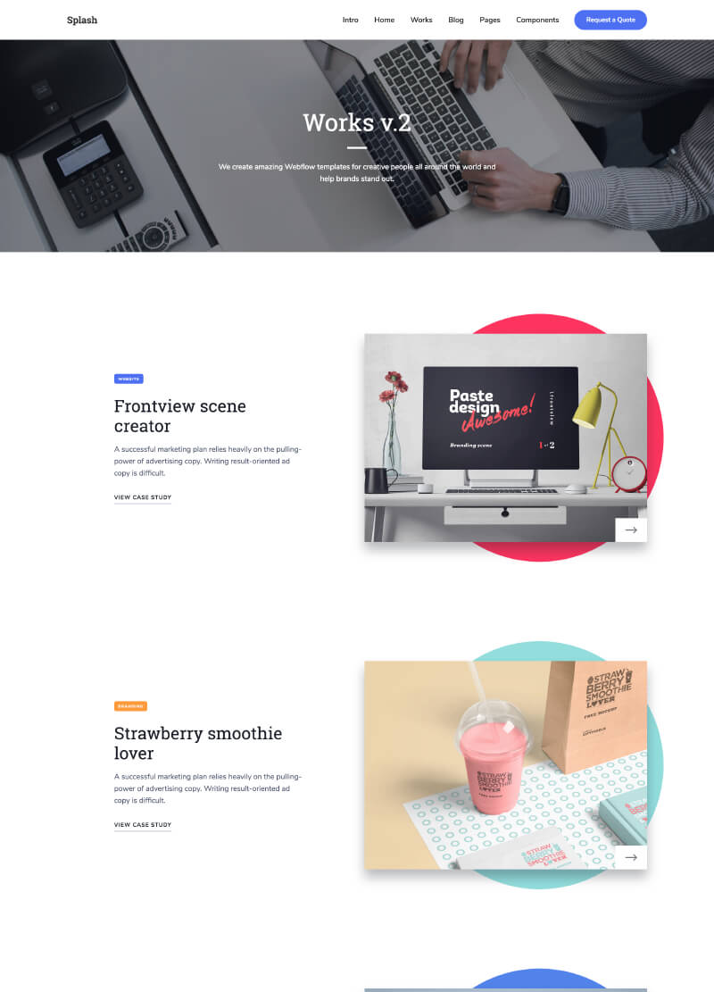 Use the power of Webflow CMS to add and edit your works, categories and blog posts. Learn more about Webflow CMS.